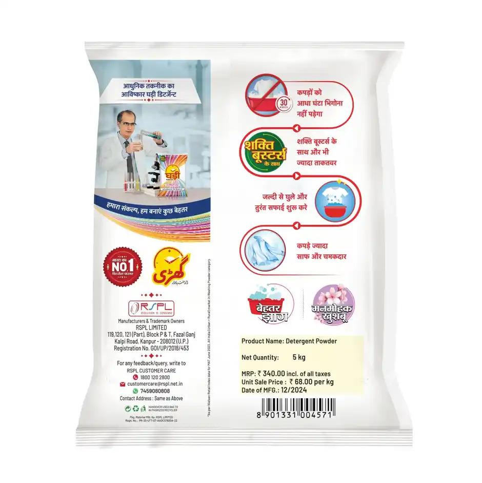 Its high-foaming formula spreads evenly, ensuring a thorough wash in both bucket and machine. Ghadi also helps maintain the brightness of your garments, leaving them looking fresh, clean, and vibrant after every wash.